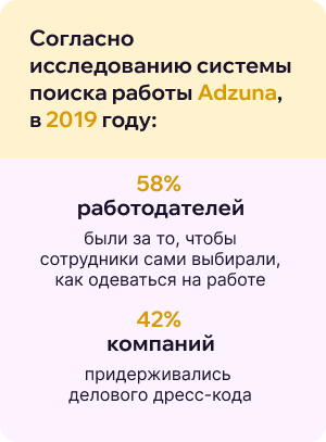 Дресс-код в любом случае должен отражать профессионализм, уважение к работе и своим коллегам. Поэтому даже если у вас есть возможность выражать свою индивидуальность через одежду, стоит помнить, что все должно быть в меру, поэтому лучше всего выбирать стильные, но уместные варианты.
