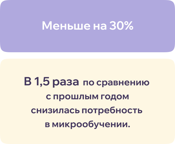 В то же время произошло перенасыщение контентом. С ростом количества доступных микрокурсов и образовательных материалов сотрудники начали испытывать информационную перегрузку.