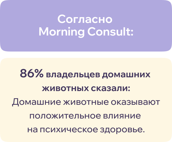 Многие исследования показывают, что питомцы помогают справиться со стрессом, уменьшают тревожность и депрессивность, а также способствуют повышению самооценки владельцев.
