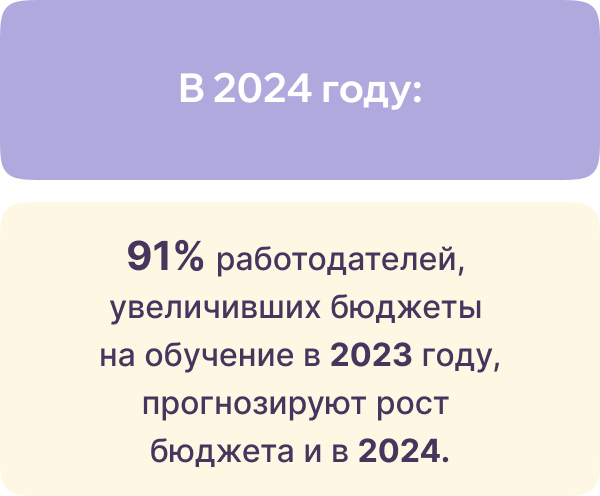 Вместе с существенным увеличением объемов обучения вырос и бюджет работодателей на эти цели. В 2022 году в условиях неопределенности компании были вынуждены оптимизировать затраты. Необходимо было сократить бюджеты на образование сотрудников.