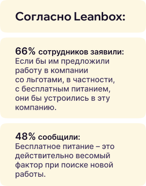 Предоставление бесплатной еды – отличный инструмент для удержания сотрудников и снижения текучести кадров.